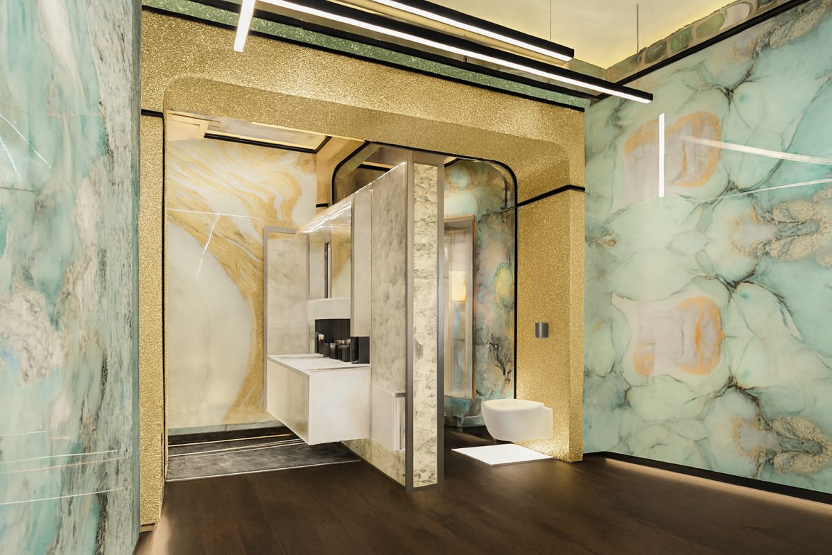 El concepto de Geberit World se centra en narrar una historia visual inspirada en los cinco continentes, fusionando diseño, funcionalidad y originalidad en un espacio lleno de equilibrio. Su estilo combina elementos dorados, proyecciones impactantes y ambientes temáticos para capturar la esencia de cada continente, creando un recorrido visual y sensorial único.